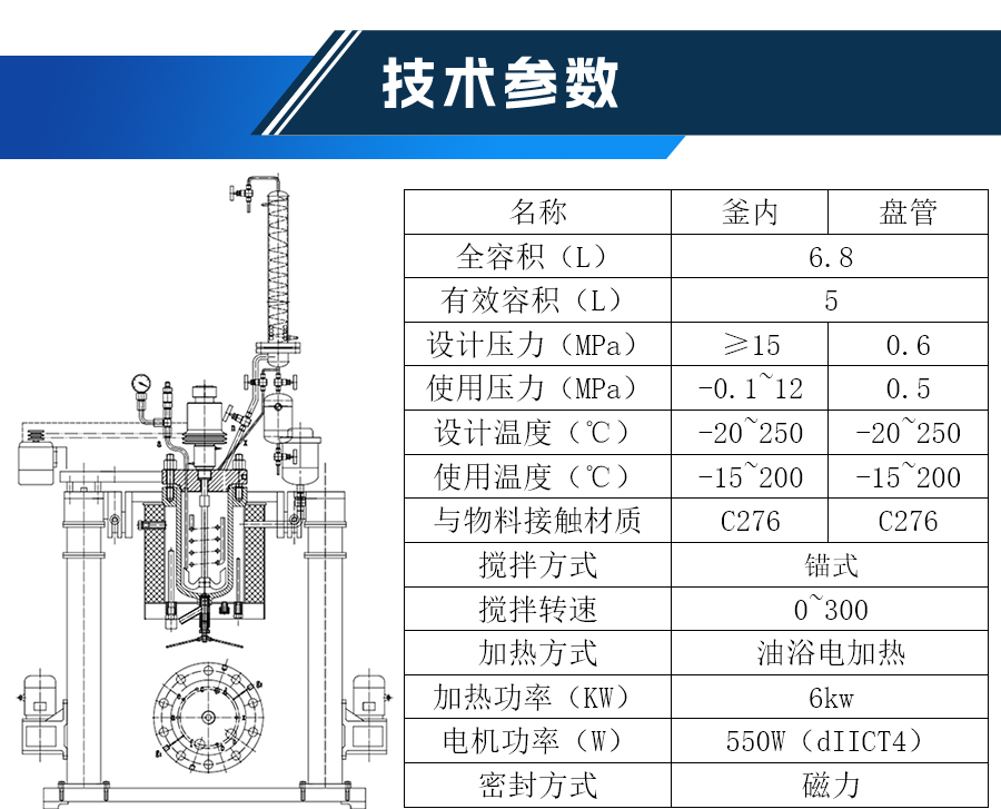 | 實驗室反應釜規(guī)格及技術參數 | ||||
