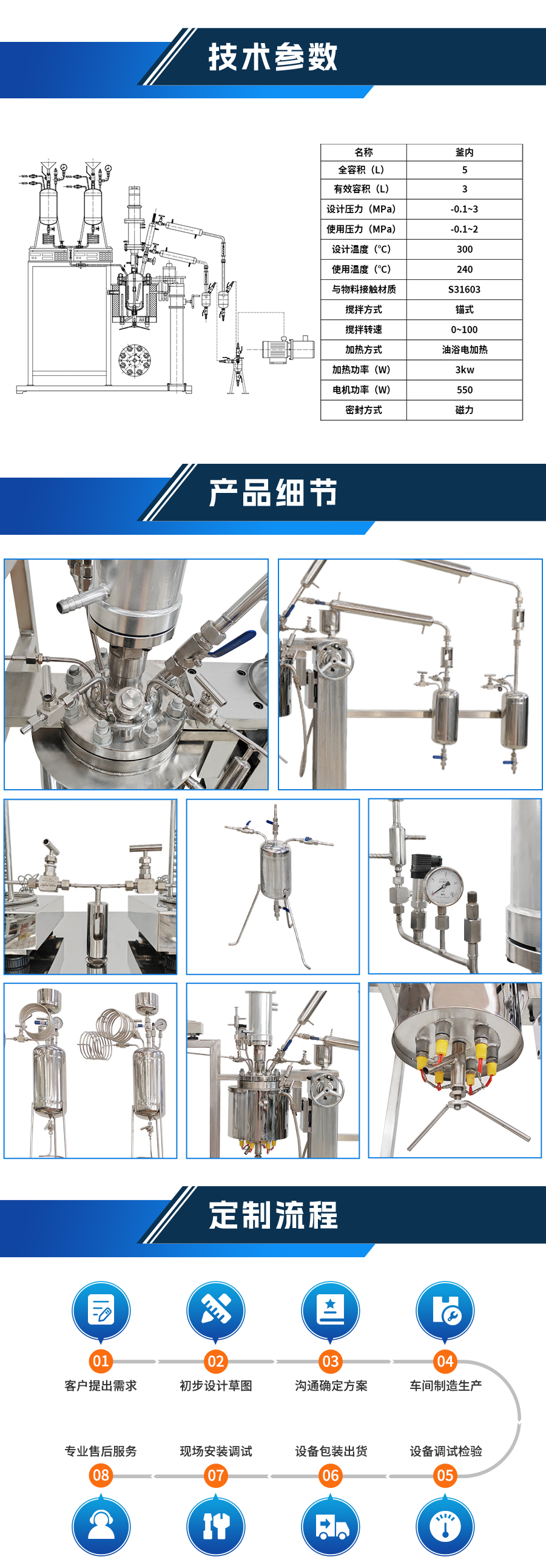 高溫酯化縮聚磁力實驗室反應釜 - 非標定制參數