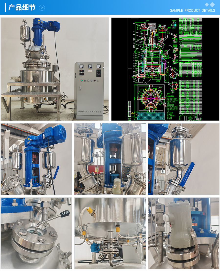 其他附件 如果用戶在釜蓋、釜體開口、內(nèi)部結(jié)構(gòu)、壓力高低、攪拌槳葉、及增加其他輔助裝置(如冷凝回流裝置、冷凝器、恒壓加料罐、接收裝置)等有特殊要求,可完全按用戶的要求加工制造